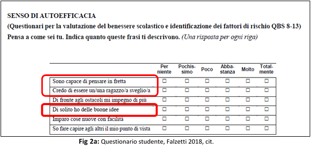 - I quesiti sull’autoefficacia, autostima, motivazione e aspettative future del Questionario 2018 sembrano appartenere all’ area scientifica della psicologia dell’età evolutiva. Non ci risulta, inoltre, alcun precedente scientifico, nazionale o internazionale, di rilevazioni di massa di tipo psicometrico-motivazionale.