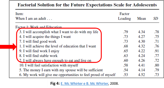 [29] E. Mc Whirter e B. Mc Whirter, “Adolescent Future Expectations of Work, Education, Family, and Community Development of a New Measure”, Youth & Society 40(2), pag. 190.