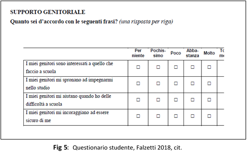 [36] Il quesito si può includere nel filone di ricerca precedente, sulle aspettative future e percezione/autostima: in tutte le batterie di items proposte, infatti, sono sempre presenti domande che indagano il supporto genitoriale.