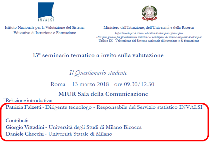 Nel marzo scorso, durante un seminario ad invito organizzato da MIUR e INVALSI sul nuovo Questionario Studente – che di lì a poco sarebbe stato somministrato -il prof. Vittadini è nuovamente intervenuto[9] sull’argomento soft skills, insieme (tra gli altri) alla Dr.ssa Falzetti[10]– ricercatrice INVALSI – che lì ha presentato alcuni nuovi quesiti.